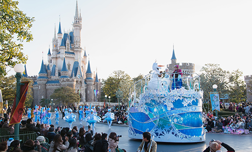 「ゲストの皆さんにディズニー映画『アナと雪の女王』の世界観を楽しんでいただきたい」という思いで、今回のスペシャルイベントを開発しました。「アナとエルサに会える」というパークならではの体験をしていただくため、グリーティングパレードではゲストがアナやエルサたちと一緒に歌ったり遊んだりできる演出にし、ナイトエンターテイメント“ワンス・アポン・ア・タイム”は、公演内容の一部を『アナと雪の女王』をイメージした特別バージョンで実施しています。イベント初日に、「レット・イット・ゴー~ありのままで~」を口ずさんでいるゲストや、嬉しそうなゲストを見たとき、胸がいっぱいになったのを覚えています。