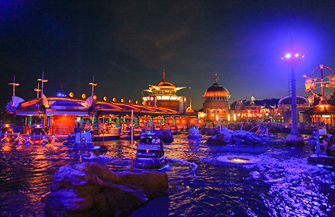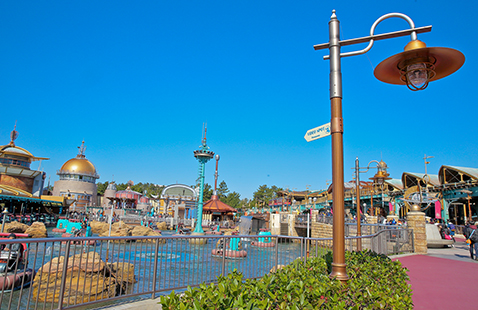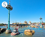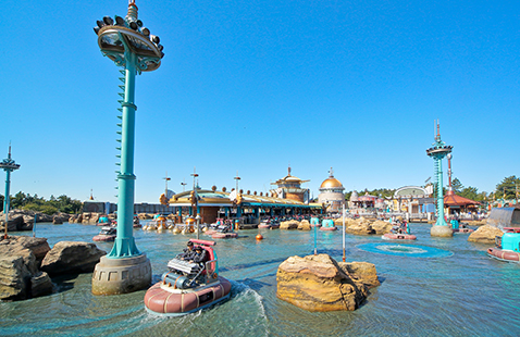 近未来的なコントロールタワーから広がるアクアトピアは、水上ドライブが体験できるアトラクション。パシャパシャと弾ける水の音、水上を縦横無尽に移動するウォーターヴィークルの動きがとっても楽しくて、家族やお友達のとびっきりの笑顔が撮れるスポットです。ウォーターヴィークルを吸い込みそうになりながら、クルクルとまわるうずまきや、豪快に吹き出す間欠泉の水しぶきなど、表情豊かな水の動きも楽しめますよ!