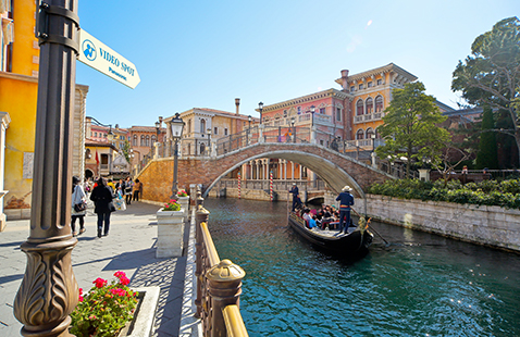 ヴェネツィアン・ゴンドラがゆったりと進む運河、イタリア語で“愛の運河”を意味する「カナーレ・デッラモーレ」。ここは、行き交う船をいちばん近くで撮影できるスポット。「チャオ!」と手を振る家族やお友達の表情をバッチリおさえれば、まるで本当にイタリアを旅しているようなビデオ映像が撮れますよ。