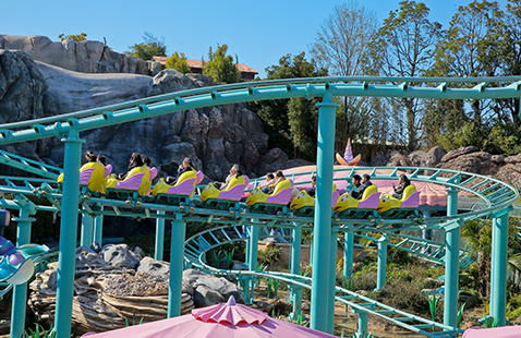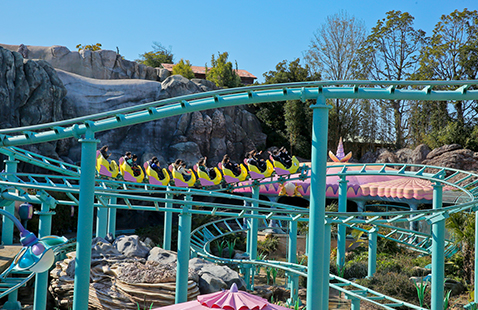 アリエルの友達フランダーが率いるこのコースターは、アップダウンや急カーブを繰り返しながらエキサイティングに動きまわるアトラクション。元気なトビウオたちのコースターが「ゴー!!」と勢いよく落ちる瞬間を、家族やお友達の楽しい悲鳴とともにキャッチしてください。コースターがゆっくりと登っていって、頂上でいったん止まり、そして次の瞬間一気にすべり落ちていきます。ワクワクドキドキの映像を、ぜひズームで狙っておさえてみてくださいね!