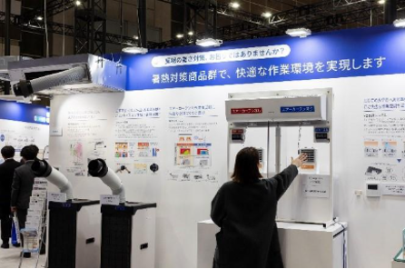 会場内でまず多くのお客様が足を止めたのが、EHPコーナーにおける「暑熱対策」の展示です。 近年苛烈を極める夏場の暑さを受け、工場や厨房、屋外施設など、これまで空調管理が困難だった空間における対策は急務となっています。ブースでは、作業者の足元や身体をピンポイントで冷やすスポット空調から、空間全体を管理するゾーン空調まで、具体的な利用シーンを想定した実機デモンストレーションを行いました。