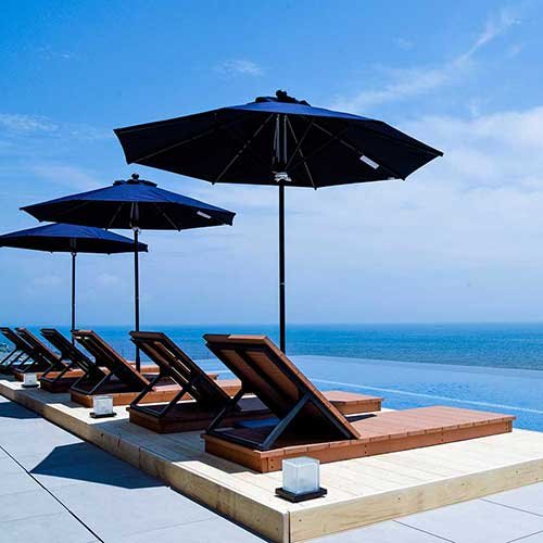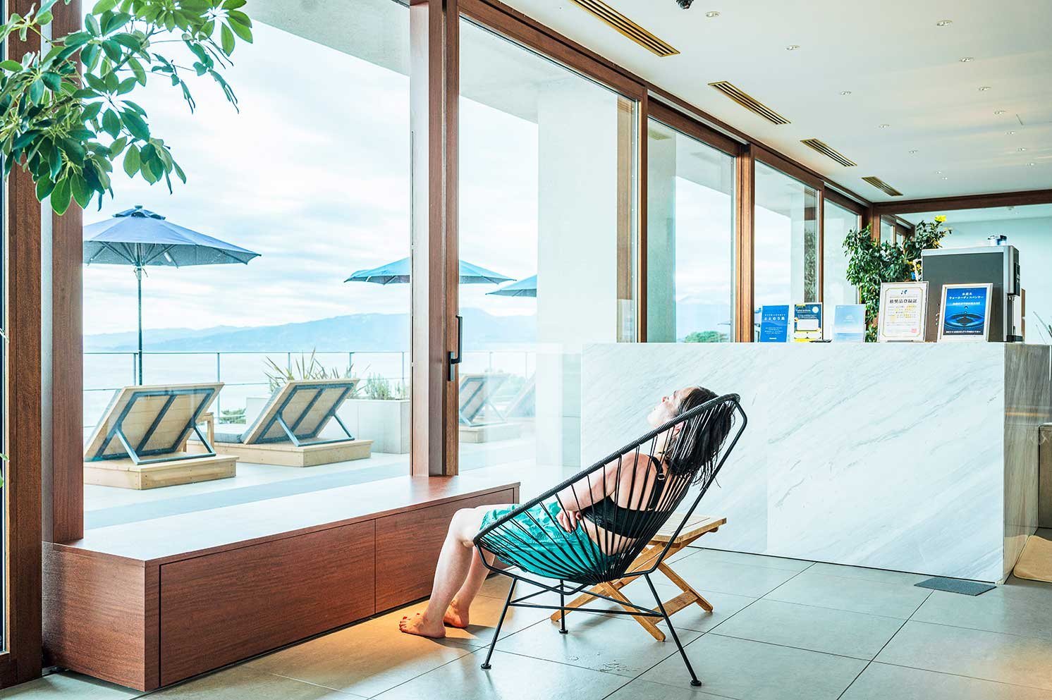 ホテル内にある温泉・スパ施設「THERMAL SPA S.WAVE」では、海と一体になったかのような浮遊感が味わえる屋外の温水インフィニティプールや富士山や太平洋の景色が楽しめるパノラミックサウナなど、絶景に包みこまれる深い癒やし体験を得られます。