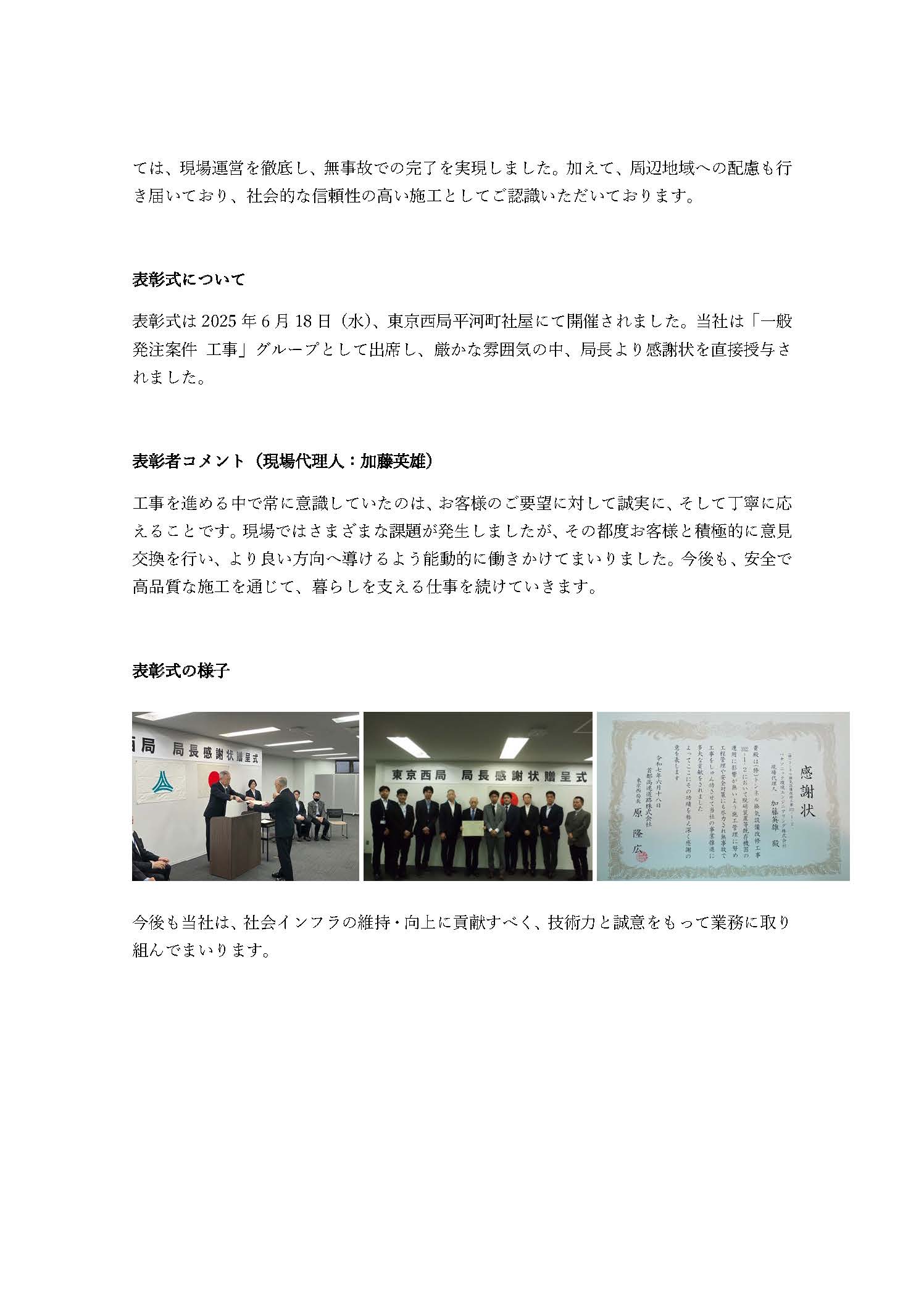 PDF「首都高速道路株式会社より表彰を受けました」はこちら