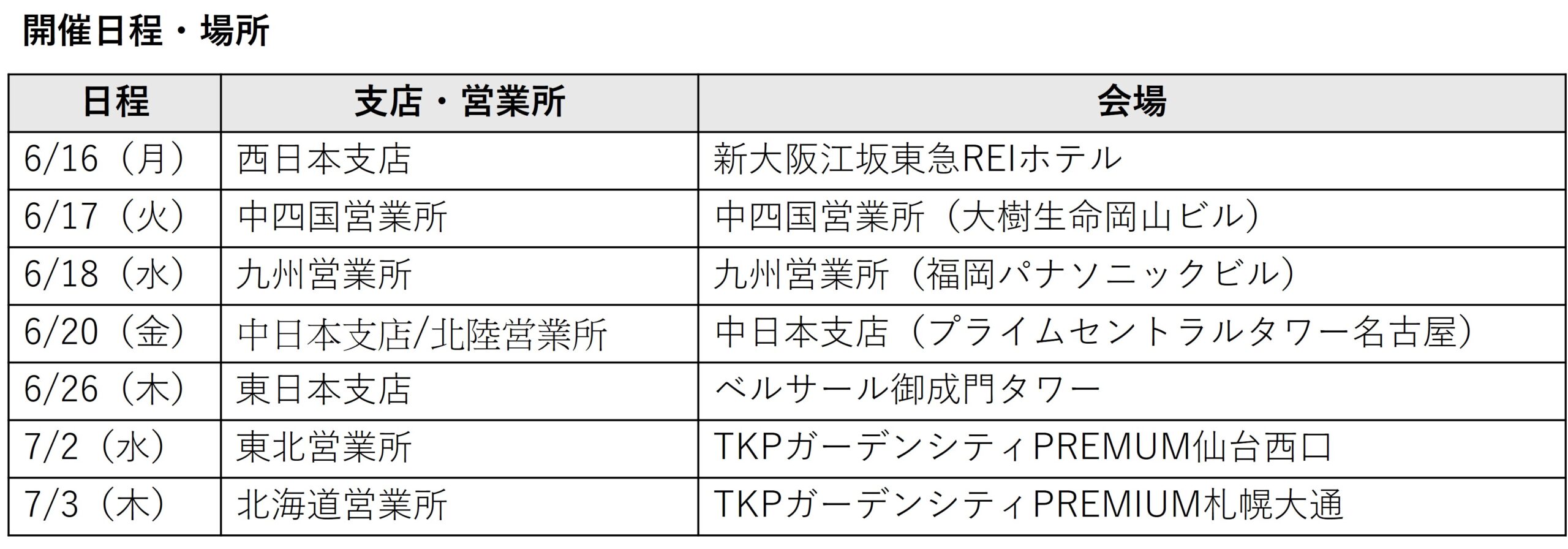 6月16日(月)~7月3日(木)にかけて、令和7年度安全大会を全国7か所で開催しました。 安全大会では、令和7年度安全基本方針と年間スローガン、安全活動目標、安全重点活動を参加者全員に共有し、安全の誓いを立てました。