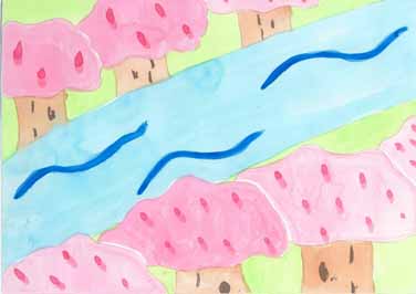 さくらが何万年もきれいにさいてください。五じょう川の水がいつまでもすきとおっているように。