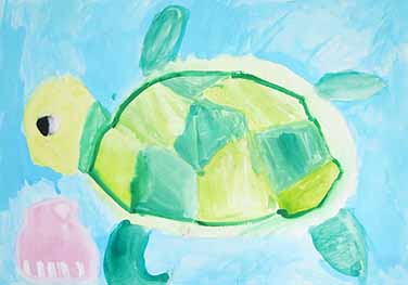 海がめがおよいでいるところを思いうかべてかきました。