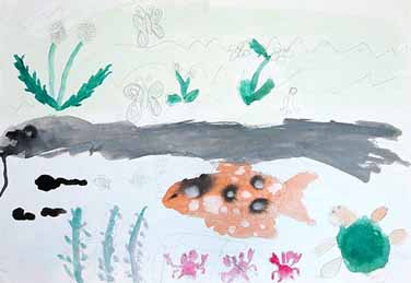 水と生き物と自然を大切にしたいという気持ちをこの絵で表現してみました。