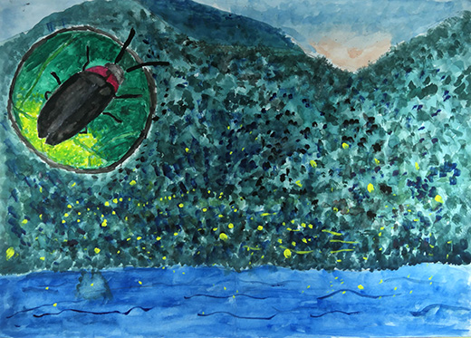 ホタルがかがやくきれいなふうけいを、大人になっても見たいと思って書きました。