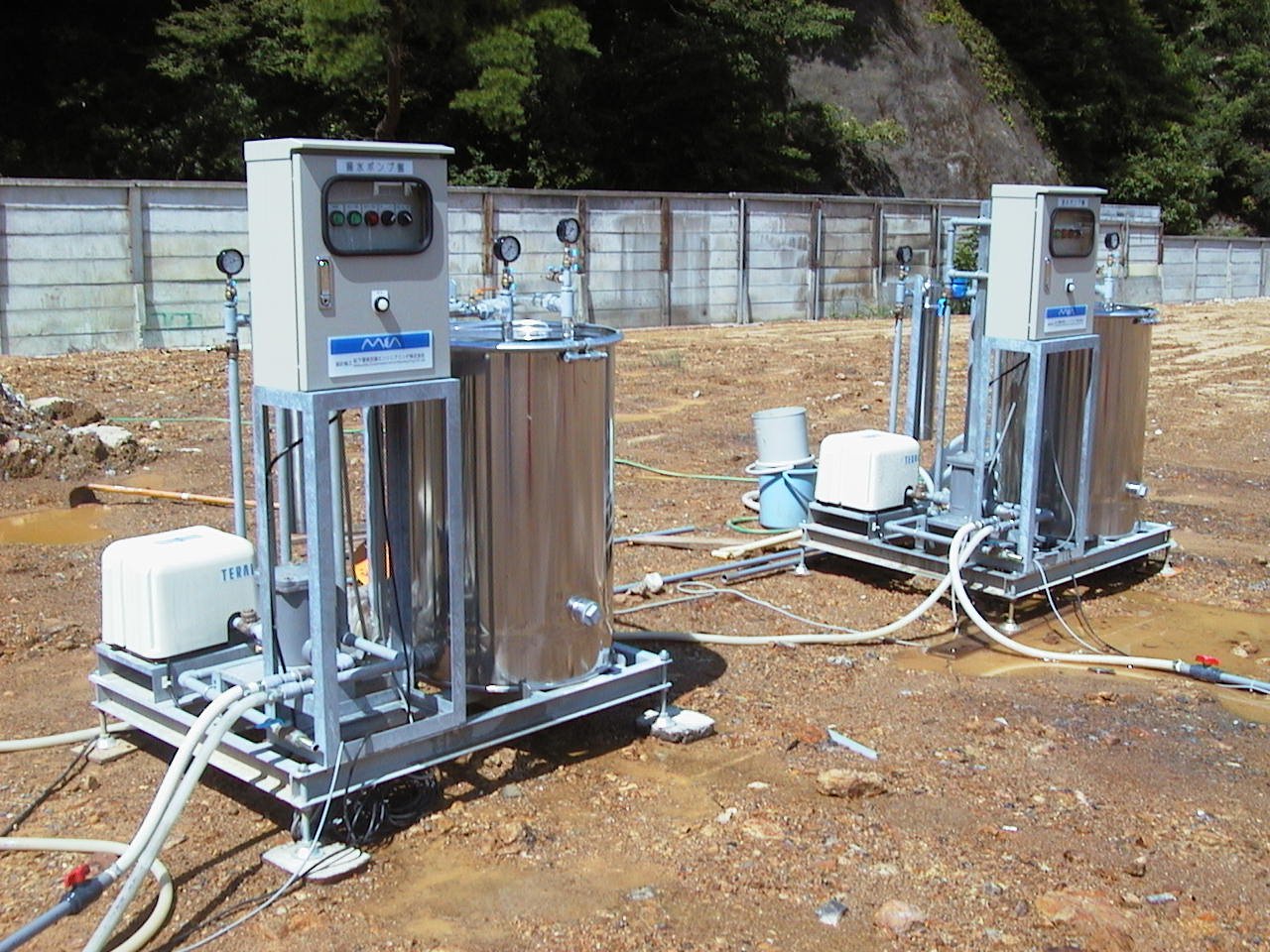 工場操業中でも調査が可能。浄化対策も独自の装置・薬剤など多様な工法を実施。