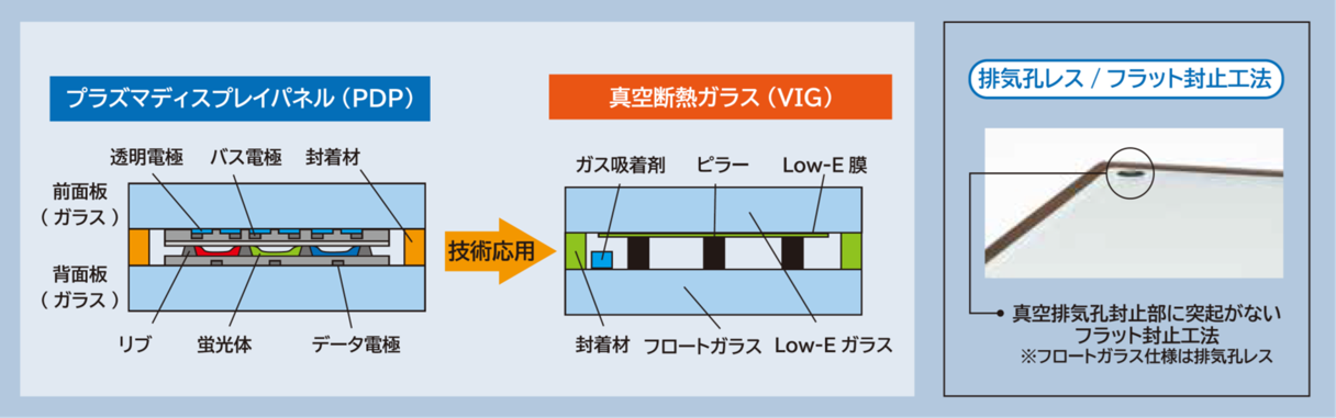 真空排気孔の封止部レス(プラズマディスプレイで培った高い封止技術で実現)。