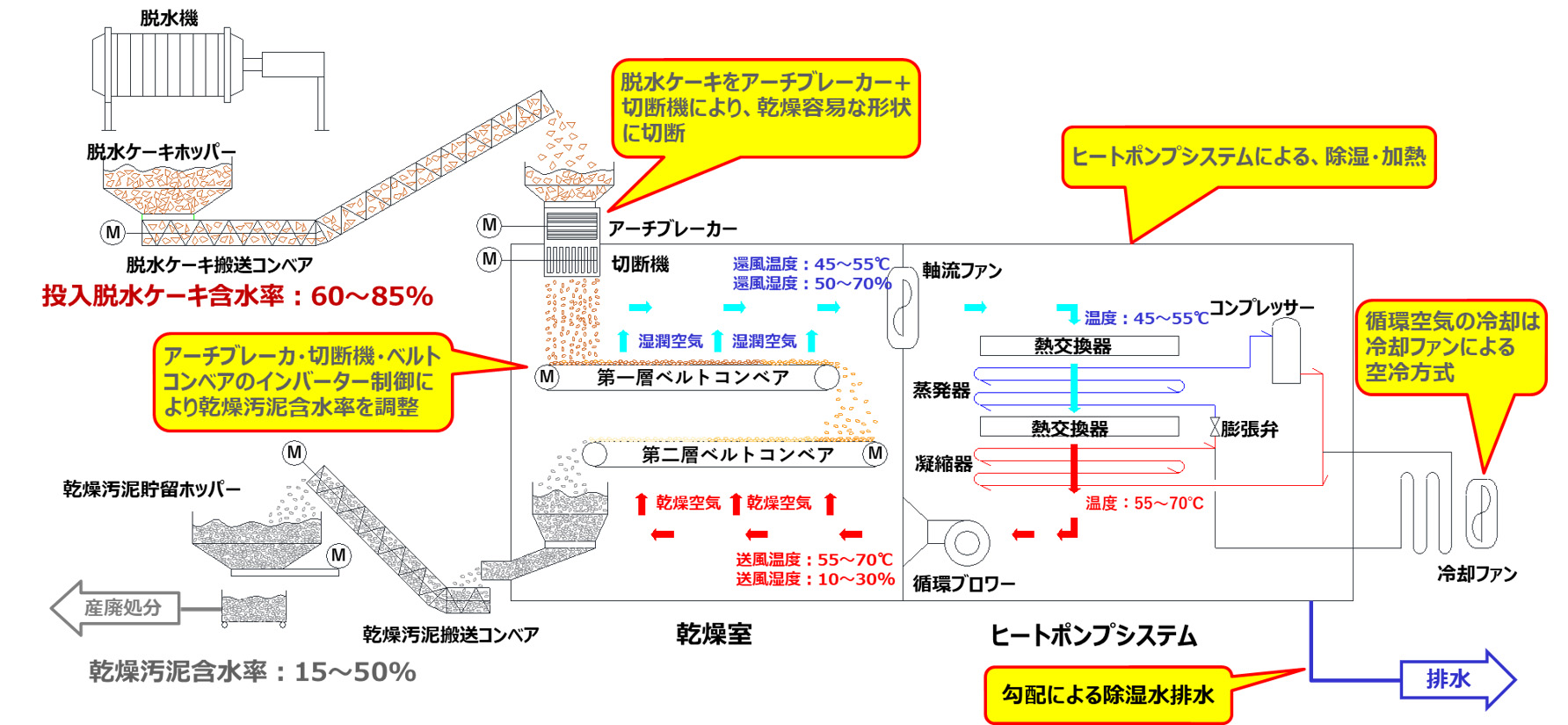 有機、無機汚泥対応の省エネ性に優れたヒートポンプ式の汚泥乾燥装置です。
