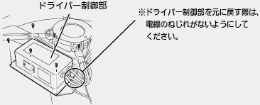⑤ドライバー制御部を元に戻し、ネジ(6個)で固定する。
