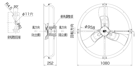 ベルマウス:ステンレス/羽根:ステンレス/スパイダー:ZAM