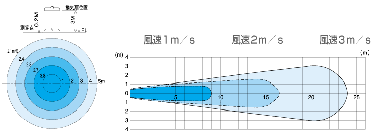 風量は、JIS C 9601(扇風機)の算出方法によります。