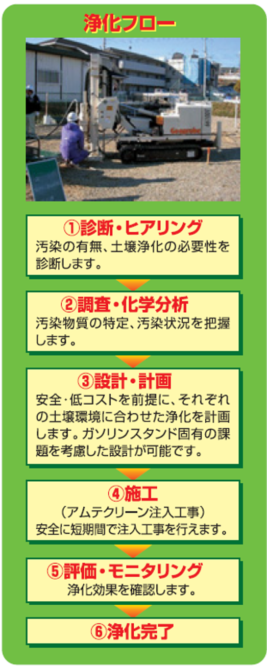 【ガソリンスタンドを営業させたまま、微生物の力で環境に配慮した浄化対策を実施。】