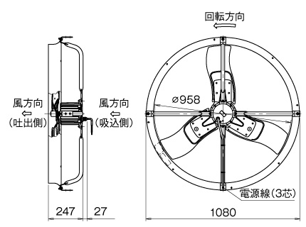 騒音値はファン・換気扇後方および両側面から1.5mの平均値を示します。