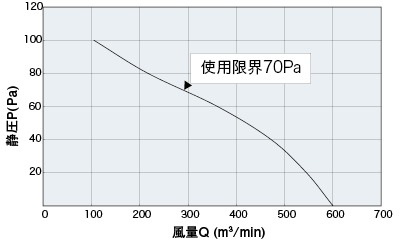 使用静圧範囲内(使用限界70Pa)でご使用ください。