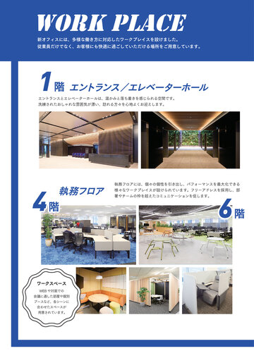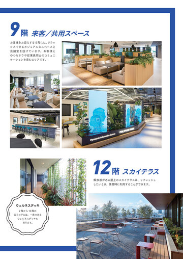 9階の8フロア約4,000坪に移転しました。主な構成は、9階に来客エリアと共用エリア、5~8階にアプリ部門、3~4階にイン