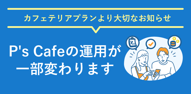 | カフェテリアプラン「P’sCafe」 | 一定期間(1年間)に利用することのできるポイントを使って、各自のライフスタイルや価値観にあった福利厚生メニューを選択・利用できる制度です。 |