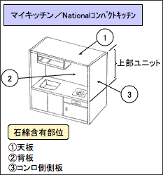 | フレキ板 Nationalコンパクトキッチン (使用箇所) 上部ユニット(天板・背板・コンロ側側板) 【図2】 |