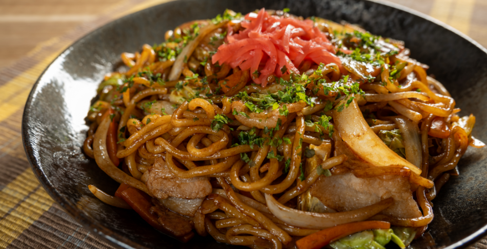 近くのお好み焼店では、素揚げしたじゃがいもを加えたユニークな焼きそばが楽しめます。もちもちの麺と甘めのソースが絶妙なバランスで、他では味わえない絶品の一品を堪能できます。