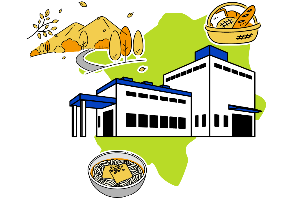 工場のすぐ北側に大型複合商業施設があり、ホームセンターやスーパー、スポーツクラブにペットショップなどさまざまなお店がそろっています。