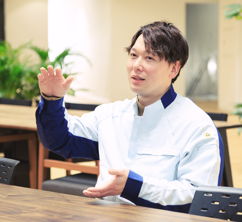 現場管理を行ううえで、一番大切にしているのは信頼関係の構築です。毎日の声かけや小さな会話を通じて、何でも話せる空気をつくることを心がけています。最近では外国籍の作業者も増えてきており、翻訳ツールや通訳を使うだけでなく、自分自身も簡単なフレーズを覚えてコミュニケーションを取るようにしています。信頼関係があるからこそ、現場では自分の判断で行動できる場面も増えてきました。現場で起きたトラブルに、部下が冷静に対応し、自分の判断で乗り切った姿を見たときは、頼もしさを感じると同時に、大きなやりがいを覚えました。また、自分たちのつくった製品が店頭で紹介されているのを見かけたときには、生活の中で役立っているという実感が湧き、仕事の意義と誇りを強く感じました。