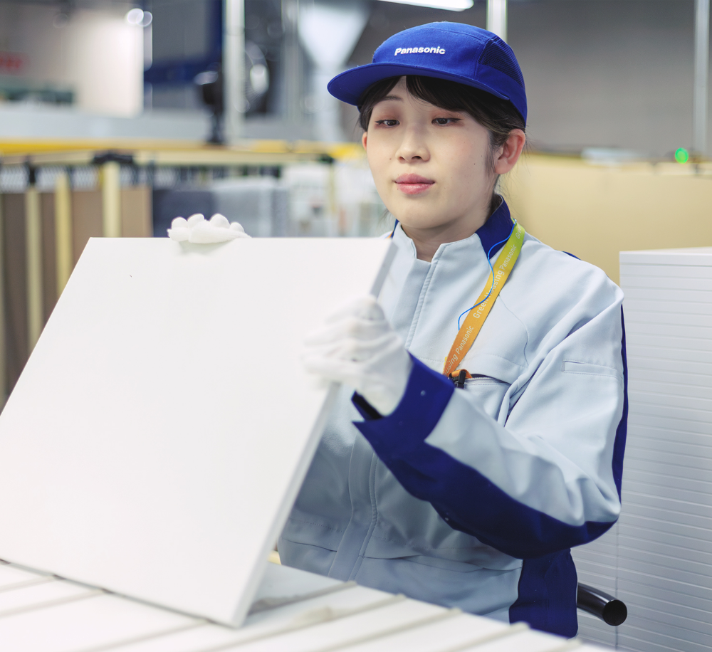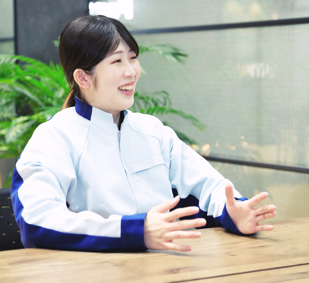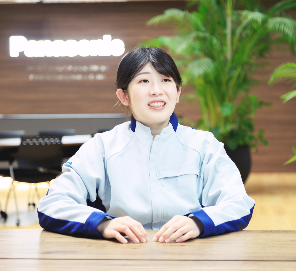 祖父母が住宅関係のオーナーをしており、幼い頃によくリフォームされた家やアパートを見に行く機会がありました。自宅と比べて天井が高く開放的だったり、キッチンが広かったりして、幼いながらも「いいな」と感じたのを覚えています。引き戸や段差の少ない床も印象的で、小さな子どもや高齢の方でも暮らしやすそうな家だと思いました。高校在学中、学校に届いたパナソニック住宅設備の求人票を見たときに、そうした記憶がよみがえり、「自分もキッチンや洗面の製造に関わってみたい」と思いました。家から近く、名前を知っている会社だったことも安心材料になり、「ここで働いてみたい」という思いが自然と芽生えました。
