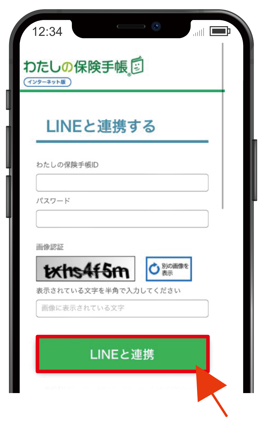 ID・パスワード・画像認証を入力して 「LINEと連携」をタップ