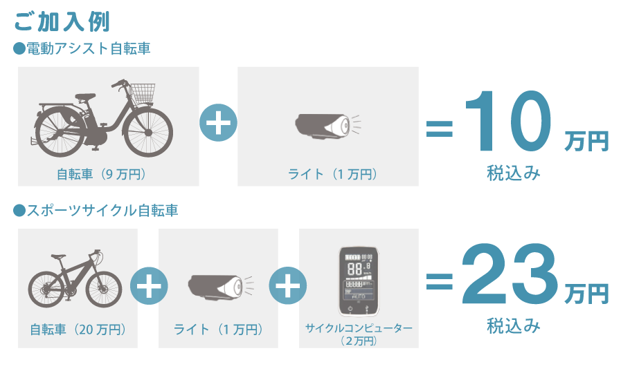 - 購入金額10万円(税込)以上のすべての自転車で加入可能