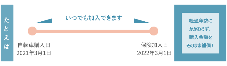 - A自転車の購入日から、何年経っていても、いつでもご加入いただけます。