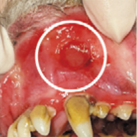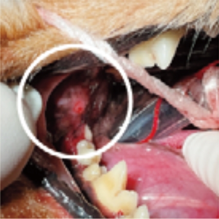 ●ヨダレが多い ヨダレが一日中出ているほか、血が混じったり、二オイがきつくなったりします。ヨダレにより、口のまわりの毛が変色することもあります。●食べ方がおかしい ゴハンを口からこぼす、ドライフードを食べない、水を飲めない、飲食時に悲鳴を上げるなどの様子も出てきます。