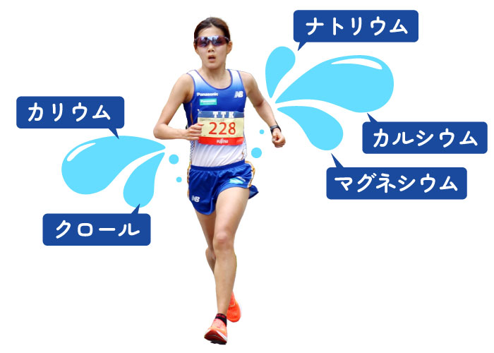 汗と一緒に失われるのは水分だけではなく、電解質と呼ばれるナトリウムやカリウム、カルシウム、マグネシウム、クロール等が含まれています。これらを補わないと、筋肉がつったり、パフォーマンスに悪影響が出ることがあります。