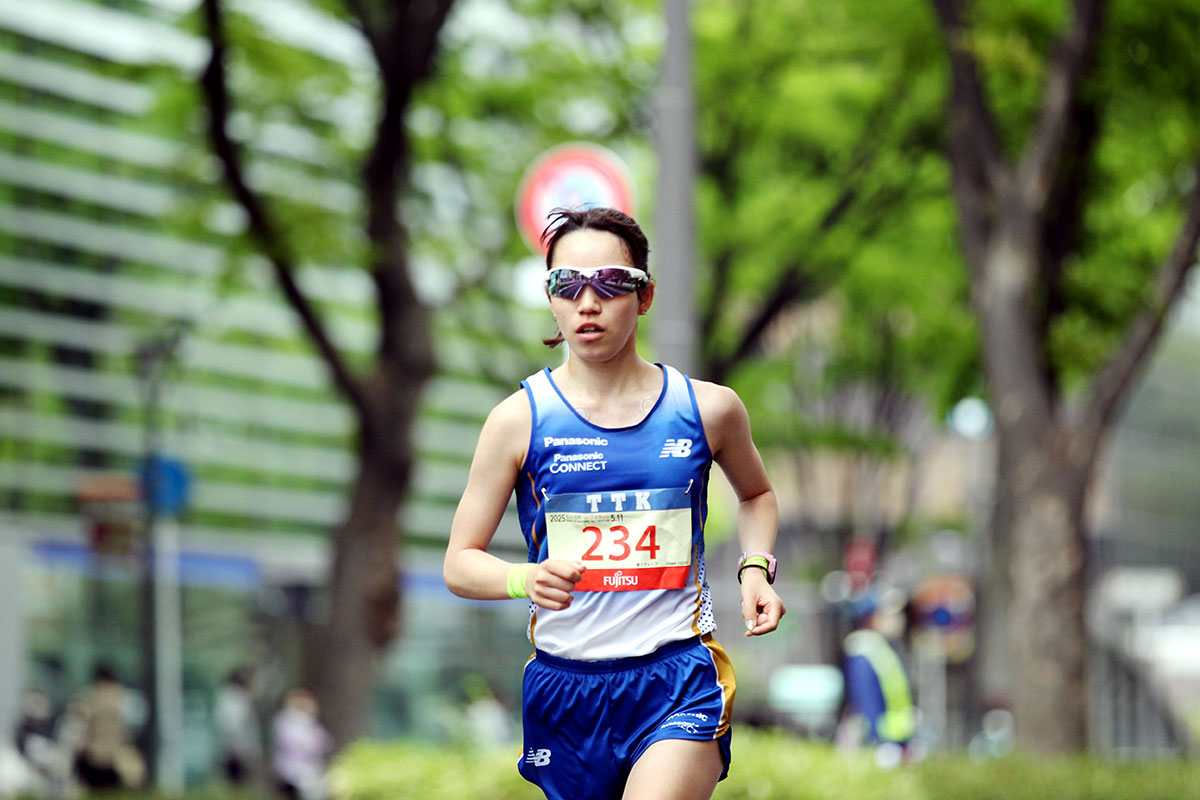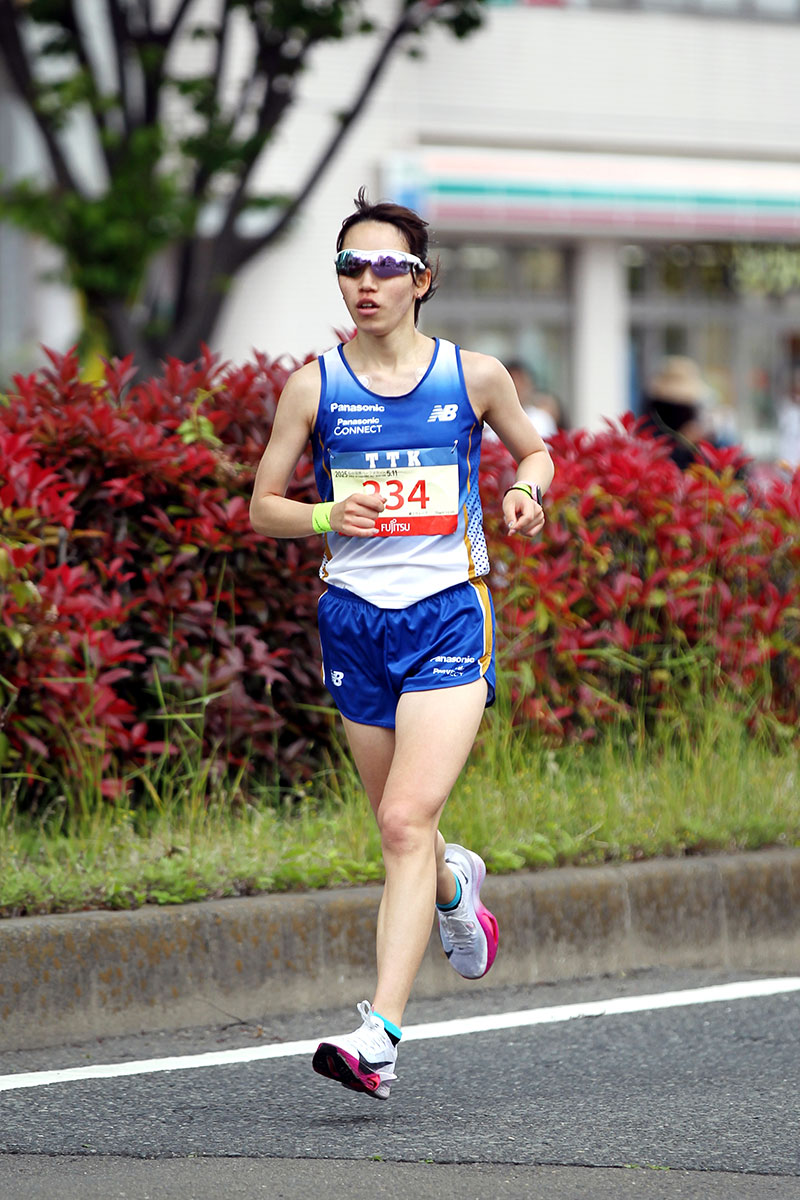 パナソニックエンジェルスからは依田来巳選手が出場。レース前半は強い向かい風で遅れをとったものの後半では走りにリズムを取り戻し、1時間14分42秒で8位入賞しました。