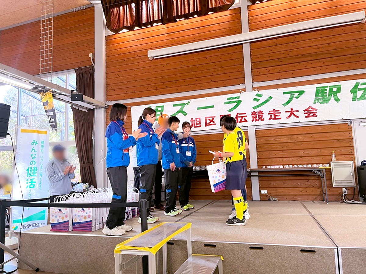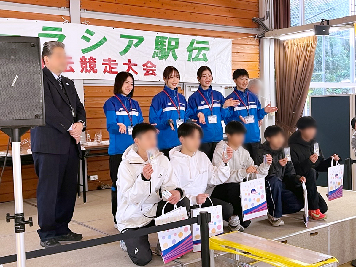 パナソニックエンジェルスも女子の部に参加し、参加者の皆様と一緒に汗を流しました。表彰式では入賞者にエンジェルスグッズをお渡しするプレゼンターを務めたり、一緒に記念撮影をしたりしました。