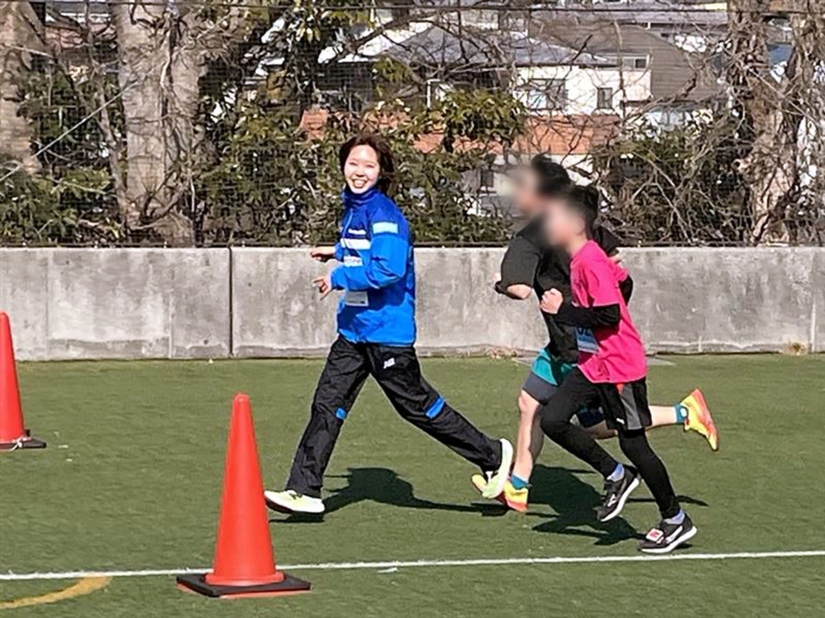 開会式の中で、4人の選手が紹介されると、大きな拍手をいただき、その後、選手たちが1人ひとりマイクを取り「ランニングのワンポイントレッスン」を披露しました。