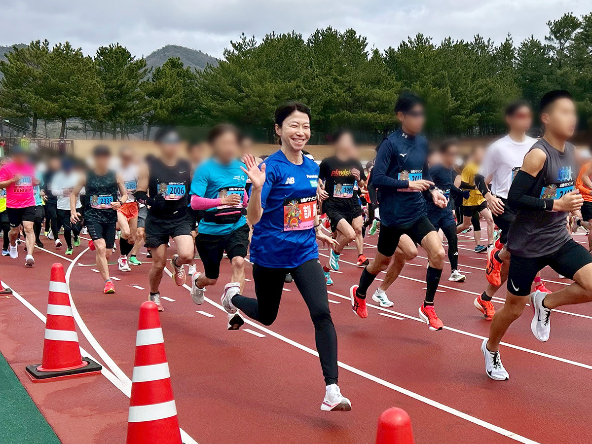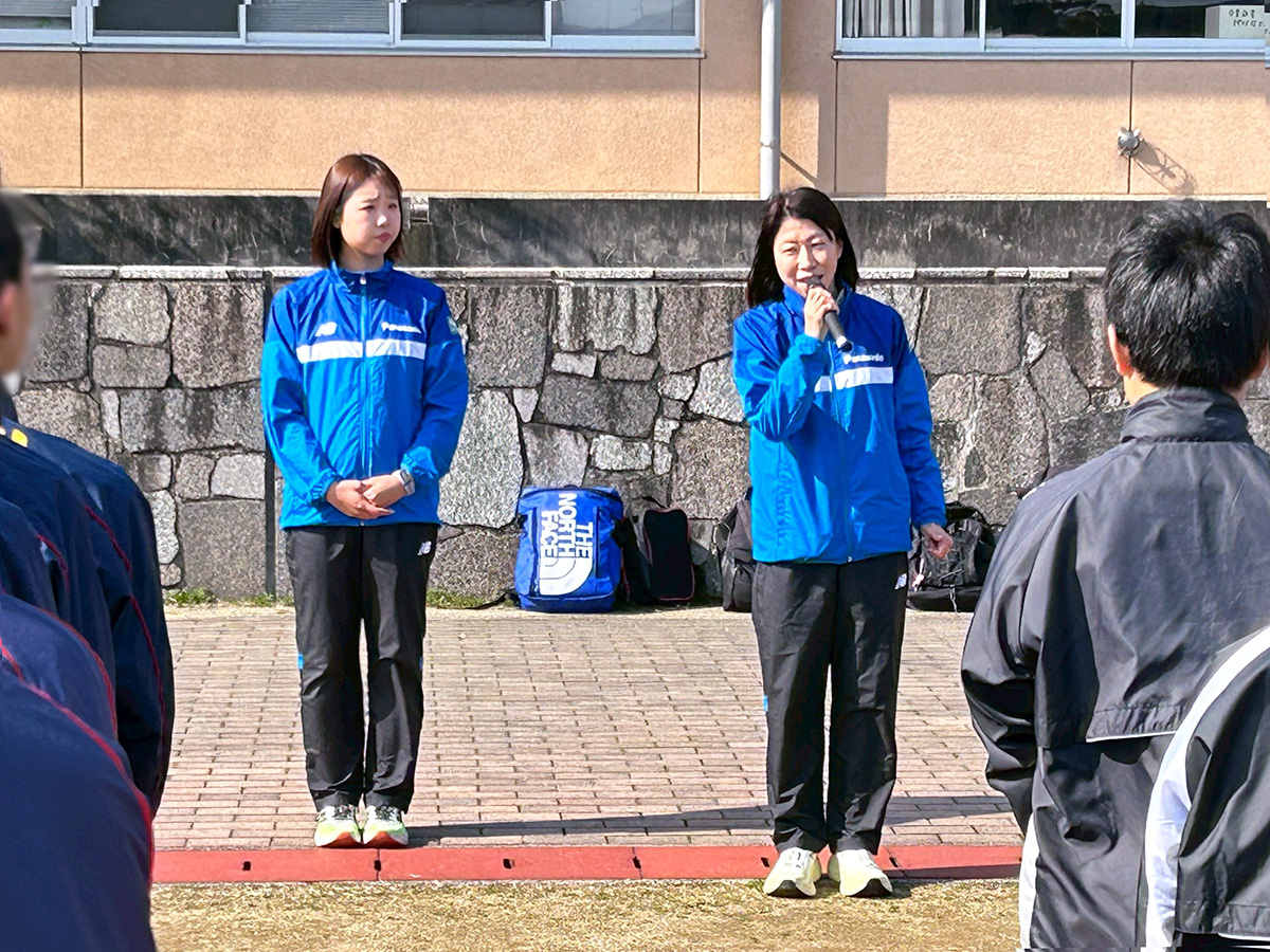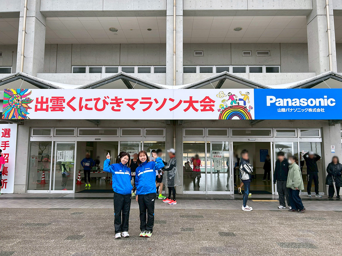 2月28日(土)、第43回出雲くにびきマラソン大会が島根県立浜山公園内陸上競技場を発着するコースで開催され、パナソニックエンジェルスからはオリンピアンである吉川美香コーチと境田百花選手の2名がゲストランナーとして参加しました。この大会は1.5㎞、3㎞、5㎞、10㎞、ハーフマラソンと小学生から一般までが自分の力に合わせて参加でき、また視覚障がいをお持ちのランナーもボランティア組織「愛走フレンズ」の伴走の下、安心して走ることのできる優しい大会として知られ、毎年日本全国からたくさんのランナーが参加します。