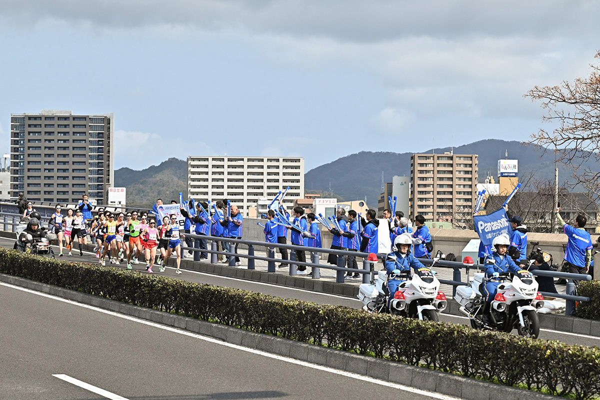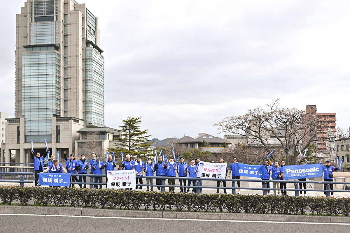 3月15日(日)に島根県松江市で開催された「第47回まつえレディースハーフマラソン」に出場する依田来巳選手・保坂晴子選手を応援しようと、山陰パナソニック㈱が、社内や地元グループ会社に呼び掛け約30人の応援団を結成、一番の難所と言われる宍道湖大橋付近で応援拠点を設け、2人に大きな声援を送ってくださいました。