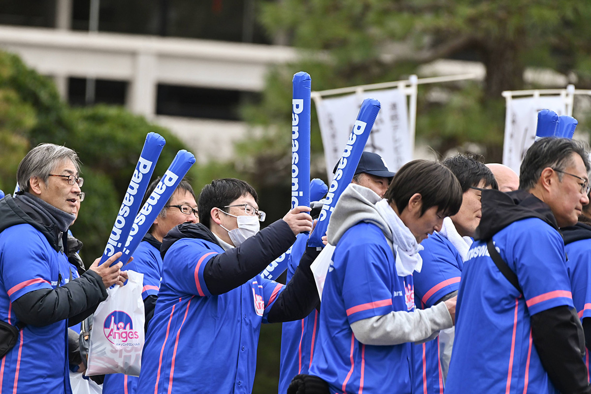 応援場所には朝から早々と集まった皆さんがエンジェルス応援シャツに着替え、スティックバルーンを膨らませ、事前に声を合わせ応援練習を実施。やがて先導のパトカーが通過する頃には、応援ムードが最高潮に盛り上げり、「せ~のっ!」「くるみ~パン!パン!パン!」「はるこ~パン!パン!パン!」と一体感溢れる応援をすることが出来ました。2人の通過後も、他の選手たちへ声援を送り続け、ゴール地点に全員で移動、保坂選手のラストスパートに再び声援を送りました。