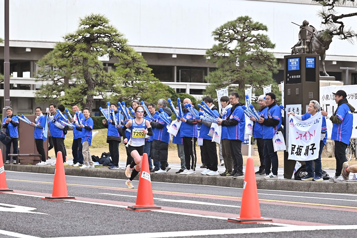 まつえレディースハーフマラソンの応援に地元グループ従業員が集結