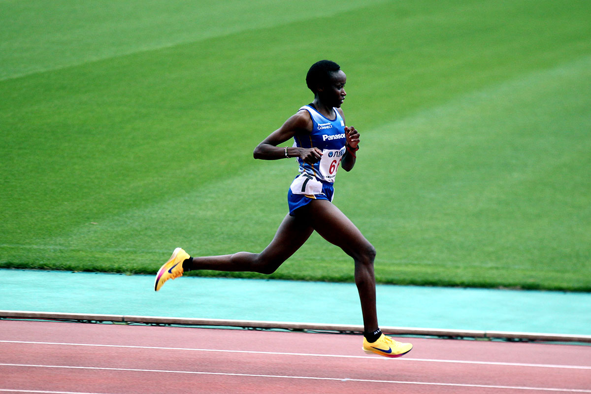 ニーヴァ選手はゆっくりと後方から全体を見渡すようにレースを進め、すぐに先頭集団に着くと一時はトップでレースを引っ張る勢いを見せました。ラスト1周にスパートをかけ2位でゴール。大会新記録でもあり、自身の記録を10秒以上も縮める14分50秒57の好記録で入賞しました。