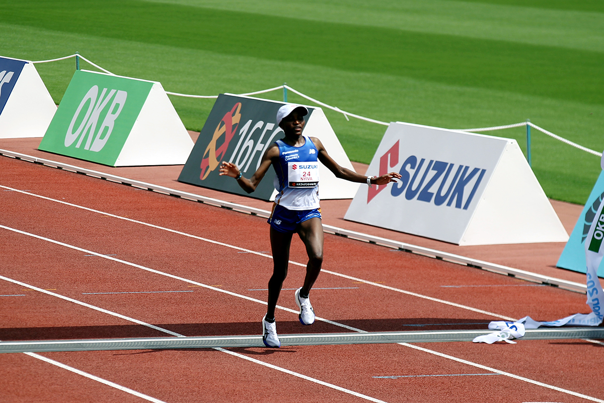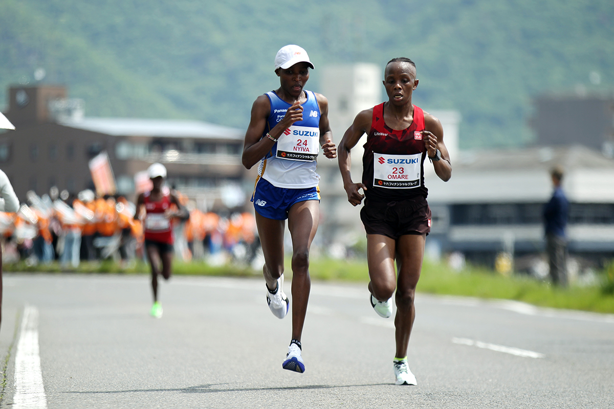 レースは9時にスタートすると、ニーヴァ選手をはじめ7,8人の外国人選手がトップ集団を形成し、レースを引っ張りました。17km地点からは、ニーヴァ選手ともう1人の選手との一騎打ちとなり、最後は2秒差まで詰めたものの惜しくも2位(1時間07分06秒)となりましたが、自己記録を31秒も更新する結果でした。
