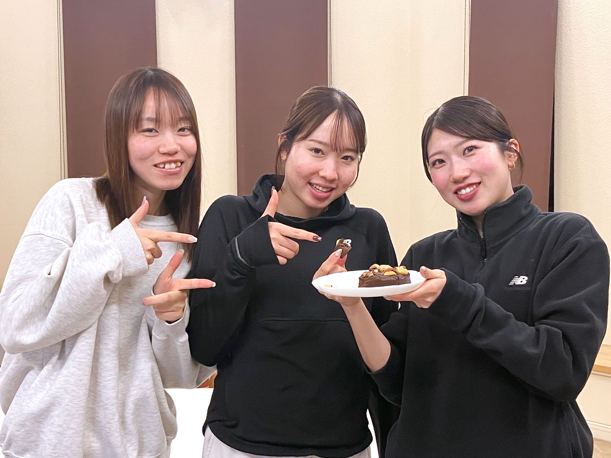 そこで、私と同じ悩みを持つ方や「甘いもの食べたいけど太りそう...😥」「ヘルシースイーツっておいしくなさそう...」などの悩みがある様々な方にも気軽に食べていただけるようなスイーツをいつも寮で料理を作っていただいている管理栄養士の蜂谷さんにメニューを考えていただきました🍰🤎