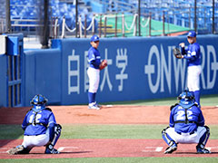 エースの藤井には、自分のコンディションはもちろんですが、若手のバックアップを頼むとも伝えています。また、投手コーチだった私の後任は、現役の金森が兼任しています。彼はプロの経験もあって引き出しが多く、技術・メンタルともに選手の育成には頼もしい存在です。コーチ陣には「めったに起こらないプレー。しかし、起こるかもしれないプレー」をつぶすように指示しています。例えば、挟殺プレーにしても、ランナーが定石とは異なる動きをするかもしれない。小さな可能性を見逃さないように、想定外を一つひとつ丁寧につぶすことが、監督・コーチ陣の役目です。