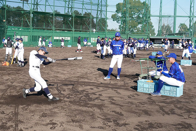 バッターは個々の技術を試合で生かせていないのが課題です。経験豊富な田中(宗)を選手兼任コーチとしたのは、ここに新しい風を送り込む狙いです。練習試合から早速その成果は現れて、ダブルスコアに近い大量の点差を、連打、連打で追いつく場面がありました。一発ではなく、つないで得点を重ねたところに手応えを感じています。野手では1人、注目選手を皆さまに覚えていただければと思います。2年目の上田です。高いレベルで走攻守のバランスが取れた外野手で、昨秋からレギュラーとして出場しています。新人とは思えないスイング、盗塁の度胸も見せてくれました。ぜひ、中心選手に育ってほしいですね。