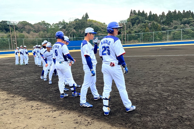 一方の打線は3回に先頭の三宅が出塁すると、続く新キャプテンの永江が送りバントでチャンスを広げる。この場面でダンテがセンター前へのタイムリーヒットを放ち、先制点を上げる。しかし、その後は5回まで毎回ヒットを放つも相手投手の要所を締める 投球を前に1-0での接戦が続く。