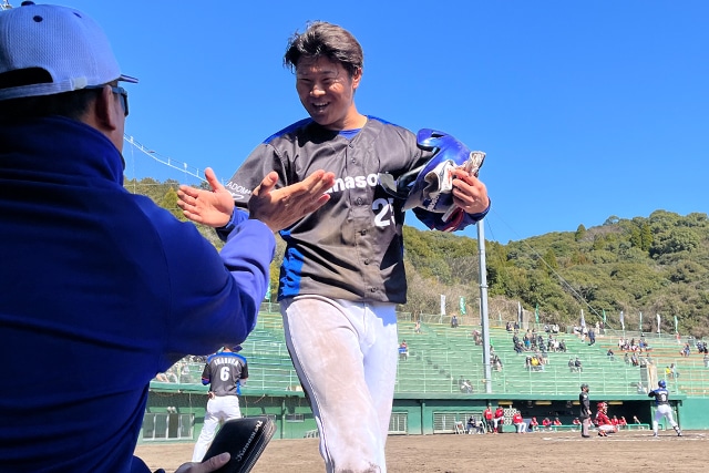 6回に1点を返されるも、以降は定本-鈴木-柏野の投手リレーで相手打線を抑え、2-1の接戦を制した。