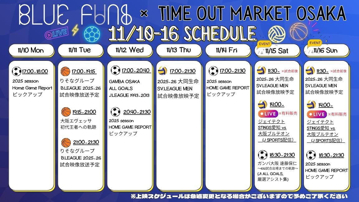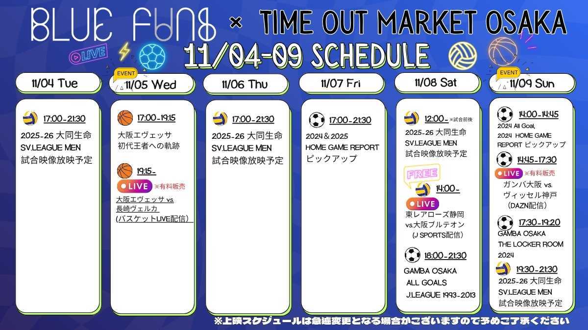 11/15、16ジェイテクトSTINGS愛知戦(アウェイ)Time Out Market Osakaでの観戦企画“BLUE FANS”開催のお知らせ