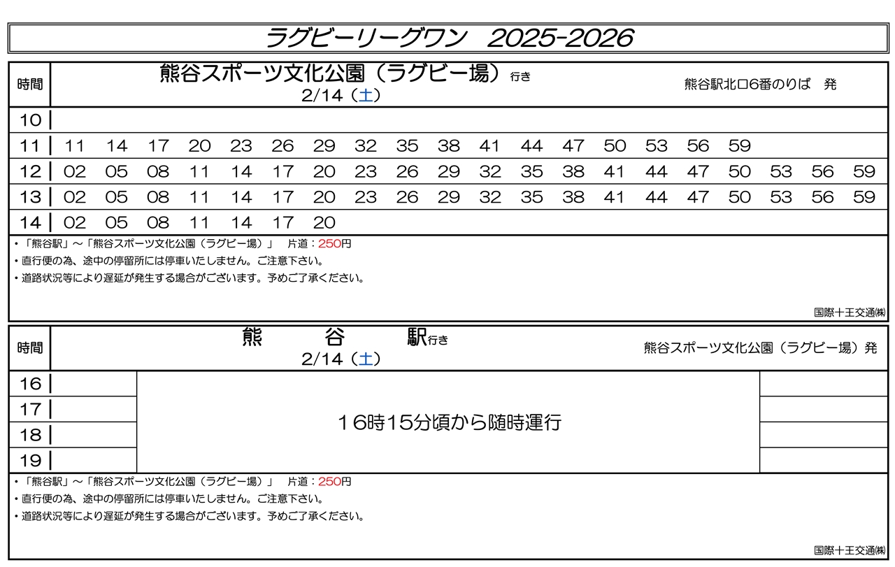 | 13:40頃 | ウォーミングアップ開始(埼玉ワイルドナイツ) ※ ボールが飛んでくる恐れがありますので、十分ご注意ください。 |