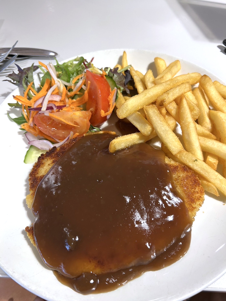 この3週間の間にさまざまな料理を試してきましたが、その中で最も印象に残り、今では一番のお気に入りとなったのが「チキンシュニッツェル(Chicken Schnitzel)」です。